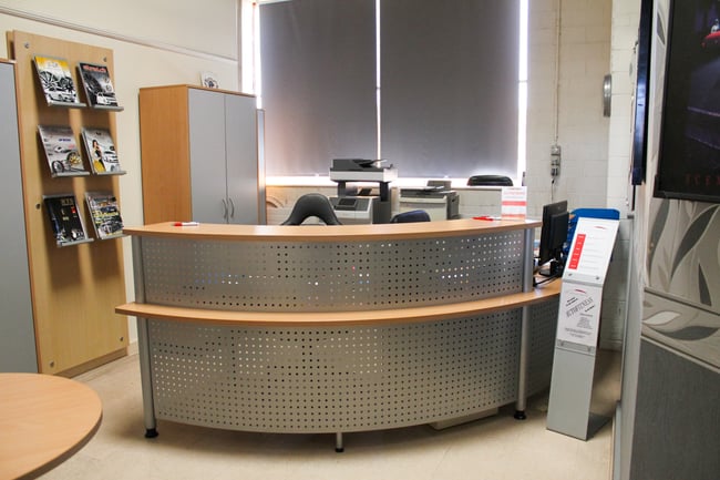 Der abgetrennte Bürobereich erlaubt korrekte und saubere Buchführung in ruhiger Umgebung. Neuste technische Fachunterlagen stehen dort für Problemlösungen zur Verfügung.